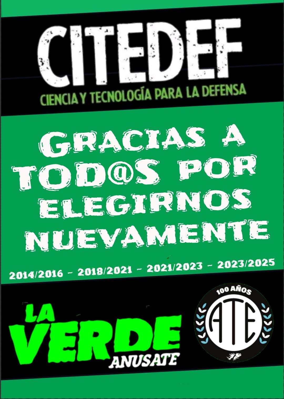Desde ATECITEDEF queremos saludar a todos aquellos que fueron, son y serán parte de nuestro querido organismo, lugar donde se han formado y salido y salen, Profesionales, tecnológos y artesanos, con capacidades difíciles de encontrar, los cuales pertenecen al RPIDFA ( RÉGIMEN PARA EL PERSONAL DE INVESTIGACIÓN Y DESARROLLO DE LAS FUERZAS ARMADAS) siendo estos el grueso del personal dentro del organismo hoy día y asistidos por compañeros administrativos.
